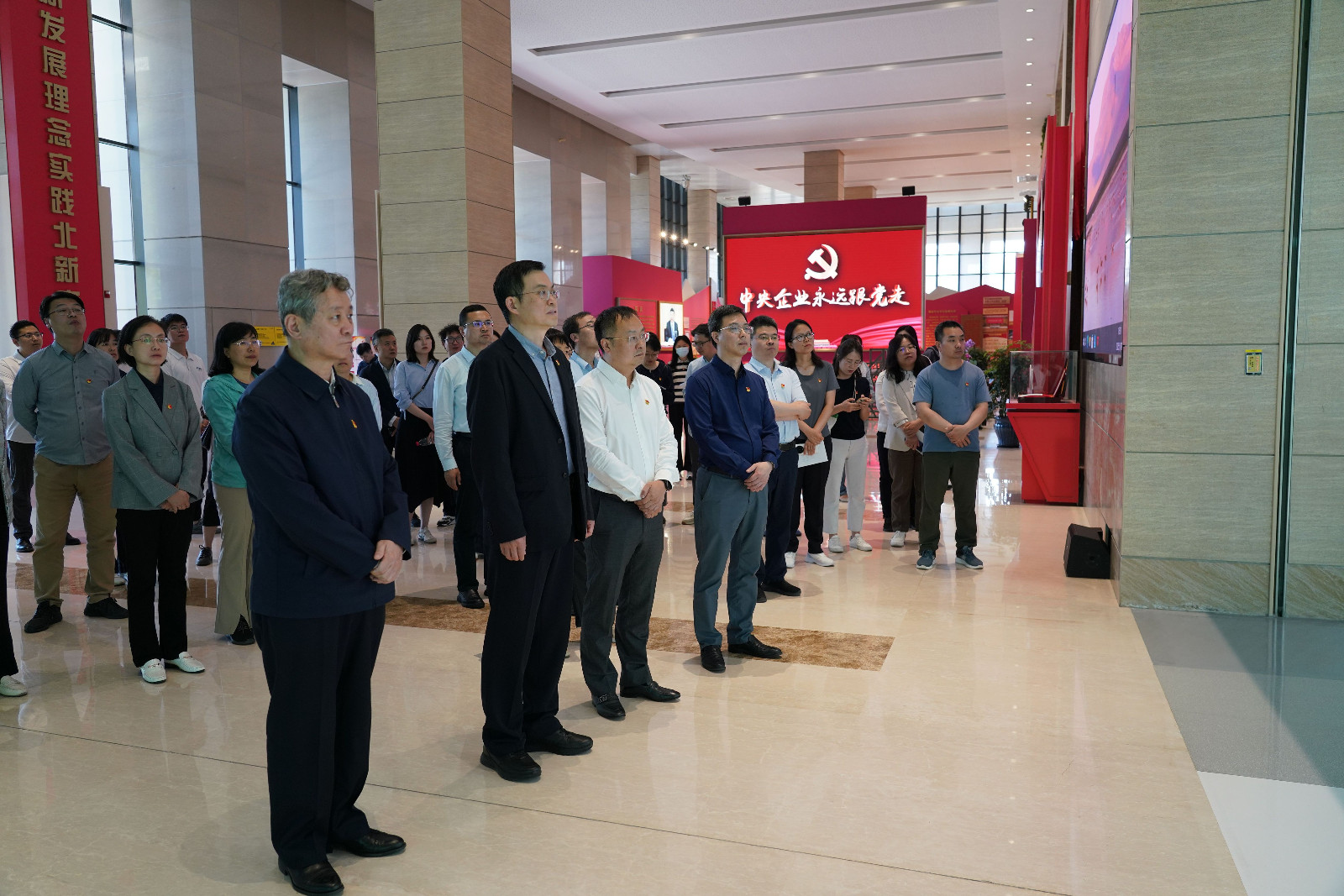 全体党员依次参观了北新建材数字化党建教学基地和“绿色科技 品质生活”展厅,重温了中国共产党奋斗历程和伟大建党精神,深入了解了北新建材的高质量发展实践历程,以及北新建材在打造全生命周期绿色产品、固废资源化利用、工业领域双循环经济方面、服务国家建设和服务人民美好生活需要等方面取得的显著成绩。