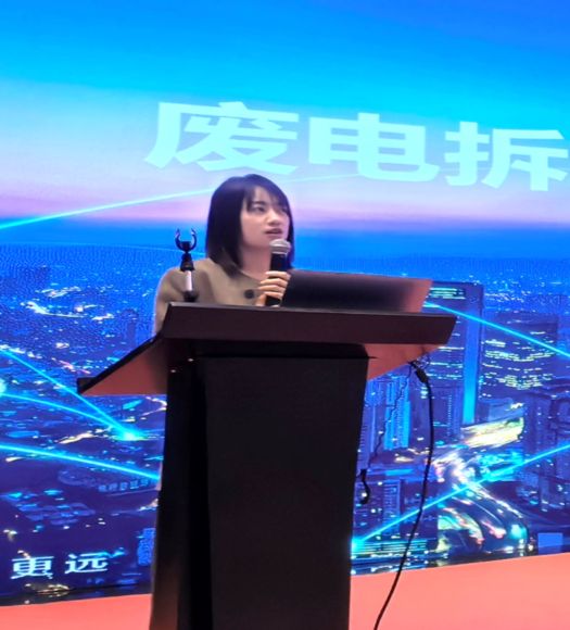会议第三单元,邀请行业专家就AI数字赋能废弃电器电子产品回收处理技术进行了交流,由浙江盛唐环保科技有限公司副总经理魏一瑜主持。杭州海康微视数字技术股份公司技术负责人高晶分享了废弃电器电子产品拆解视频点数、合规性智能化分析应用方案;德国URT公司(中国)总监舒满星分享了国内外电子废弃物先进回收处理技术案例;南京万舟发机电科技公司总经理叶成分享了AI技术在电废行业的应用,重点介绍了AI技术在废旧冰箱碎塑料分选细铜丝和电线的应用案例。