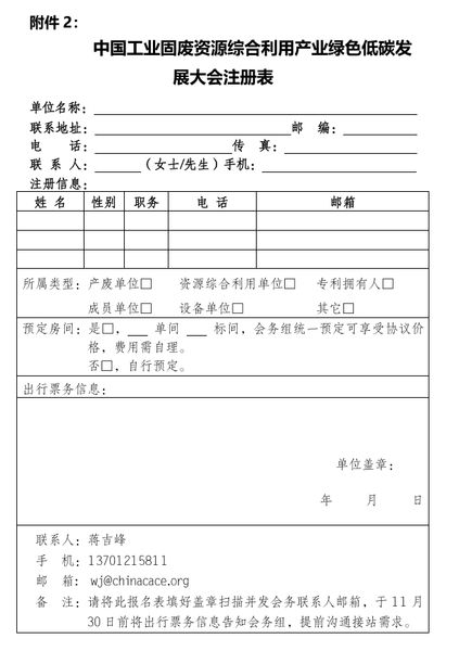 附件2中国工业固废资源综合利用产业绿色低碳发展大会注册表.docx