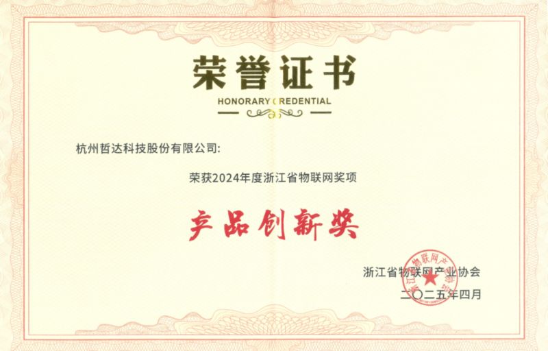 哲达科技凭借卓越的技术研发实力和持续的产品创新能力,在杭州举办的浙江省物联网产业协会三届五次会员大会中,获得行业认可,成功摘得2024年度浙江省物联网"产品创新奖"桂冠。