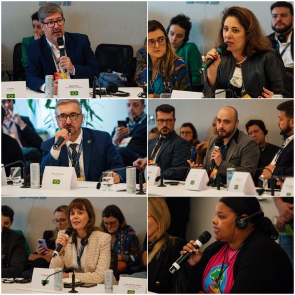 圆桌讨论环节,中国国际工程咨询有限公司主任张英健、中国包装联合会副会长韩雪山、中国工业节能与清洁生产协会新能源电池回收利用专业委员会副主任张红宇、清华大学循环经济研究院院长朱兵、瀜矿科技联席董事长张友谊、武汉光谷蓝焰新能源股份有限公司董事长熊建、河北瑞兆激光总经理韩宏升、安徽丰原集团副总经理曹孟臣、河南银金达副总经理武廷孝、荣耀终端公共关系总监黎子安等中方发言嘉宾,与巴方代表就循环经济政策、生物质资源利用及绿色转型案例分享等内容展开对话。